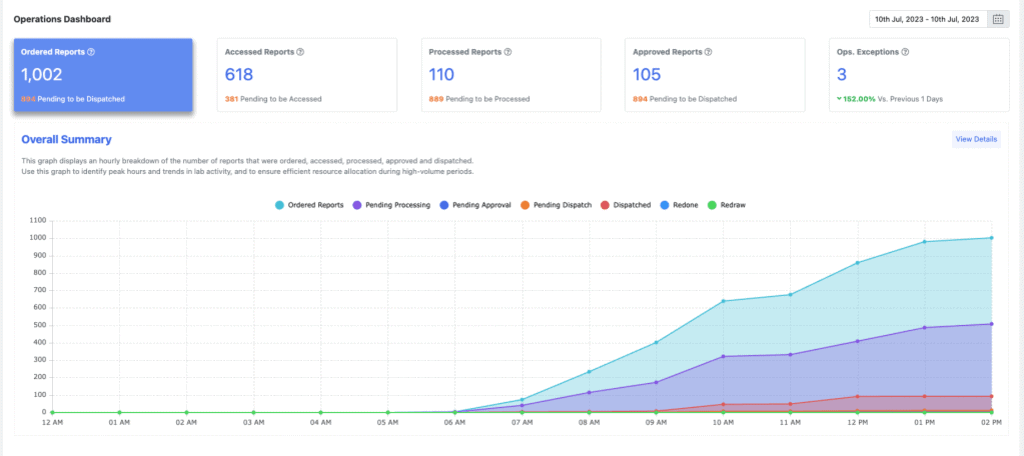 Our operations dashboard was a significant launch last quarter, which covers comprehensive insights that can assist your lab in boosting performance. Revolutionize how you manage operational data with five dedicated sections and detailed information on each stage of report processing.