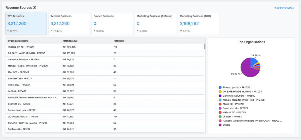 - Allows lab managers to analyze revenue trends, identify revenue streams, and make informed decisions for future investments and business strategies.