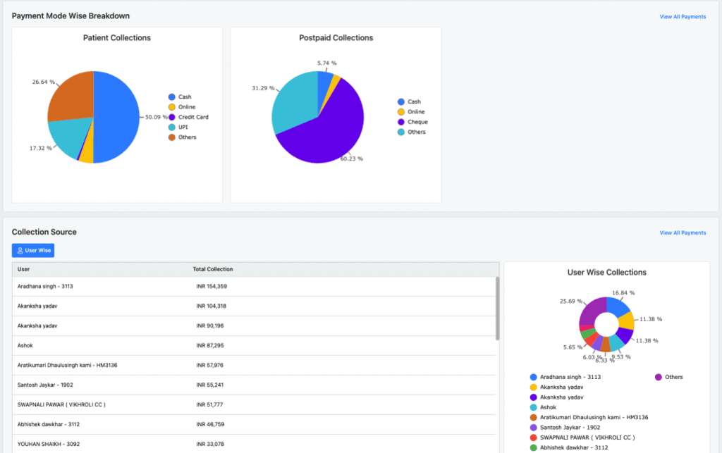 - Get insights into payment modes and collection sources, including valuable information about top creditors.
