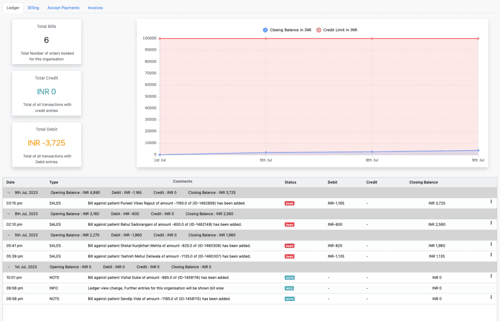 Dashboard for parent org: The system provides a dashboard that displays the financial status of all child organizations. The parent org can easily track the dues and ledger of each child org in a centralized location.